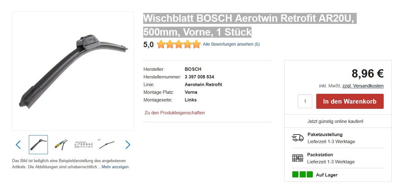 Was für Scheibenwischer kommen auf unser Fahrzeug?