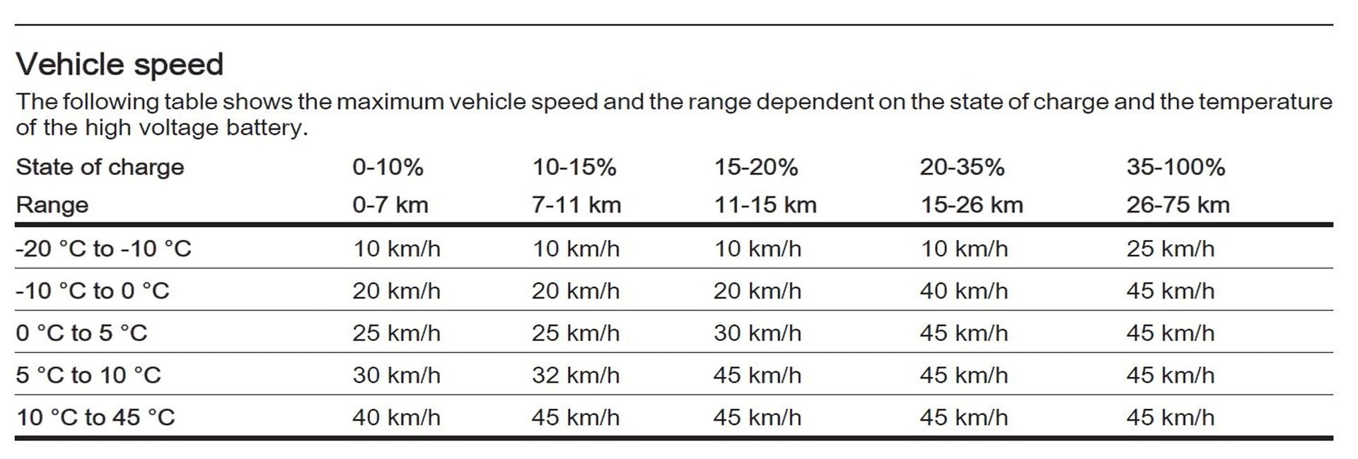 Kalt, Steigung, nicht volle Batterie - egal was davon, der Kleine schafft die 45 kmh jetzt nur noch in der Ebene. Und bergauf schalte ich die Heizung auch immer aus. Steigungen, die ich normal mit 42 kmh schaffe fährt er jetzt bei 0 Grad nur noch mit 37 kmh rauf. Wo vorher 32 km kmh angesagt waren, sind es jetzt nur noch 27 kmh.