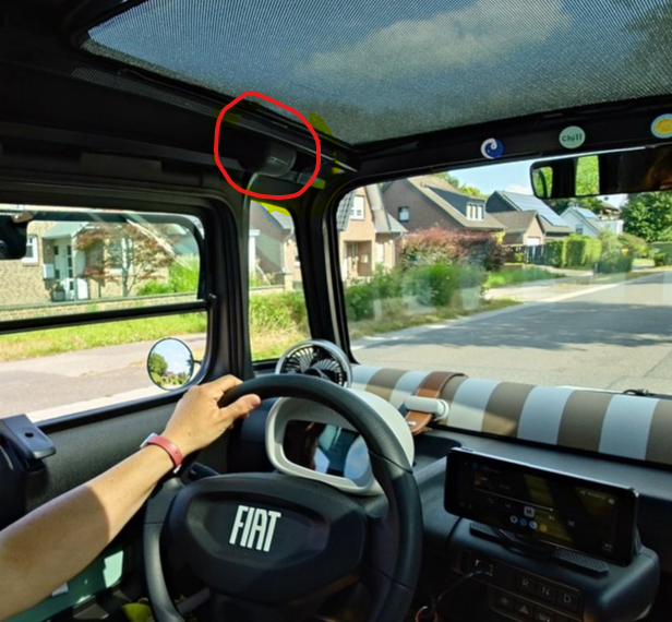 • Wir haben eine runde Sony SRS-XB 10 Bluetooth Box im Topolino. Zuerst stand sie in der entsprechenden Mulde, per Zufall habe ich aber festgestellt, dass sie sich dank ihrer Gummierung perfekt oben zwischen den Streben einklemmen lässt. Der Klang ist mit dieser Ausrichtung um Welten besser weil die Box auch nur in Richtung Fahrer/Innenraum den Sound ausgibt. Zudem ist sie gut bedienbar und wird von außen nicht gesehen.