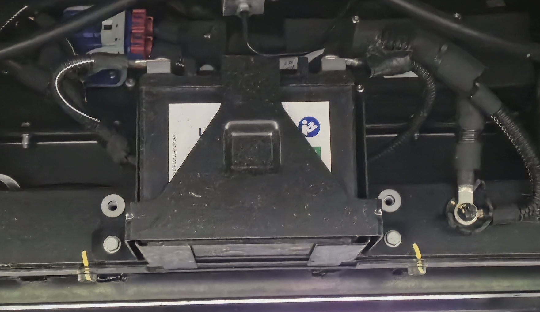 Zum Ausbau der Batterie werden ja links und rechts daneben die 2 Schrauben gelöst.