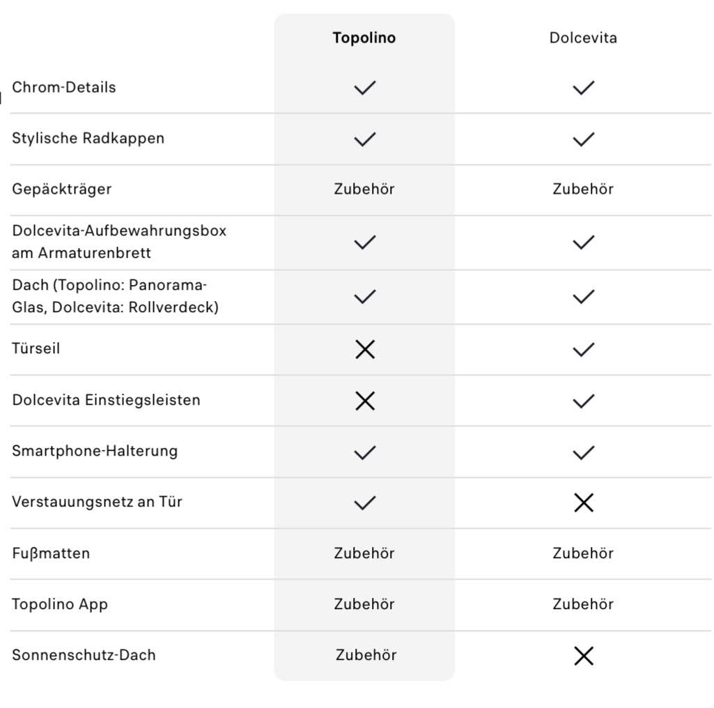 Zu Beginn als ich meinen 11/23 bestellte waren Fußmatten ( DolceVita ausgenommen) , Gebäckträger, Chromspiegel,Trennnetz, Amaturbretthacken und Händyhalter Serienmäßig.